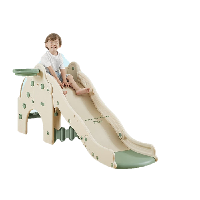 Perosotan bergelombang bertema gajah lucu, dilengkapi papan sisi perosotan dan landasan mendarat yang nyaman. Material dari plastik yang aman.