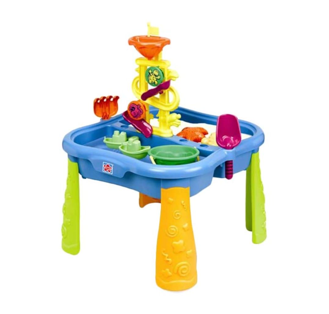 and & Water Table explores both SAND & WATER fun….. ALL-IN-ONE TABLE! Flexible for both at home and outdoor use. Durable, one-piece plastic hard cover keeps sand clean and dry. It converts the water table into activity tabletop. Include: Water funnel, shovel, rake, bucket and 2 sand molds. Product Dimension: (Count to water funnel level) 26.7"W x 26.7"D x 24"H Product Dimension: (Count to plastic cover) 26.7"W x 26.7"D x 15.7"H Product Dimension: (Table only) 26.7"W x 26.7"D x 15"H Retail Box Dimension: 27.6"L x 6.7"W x 28.1"H N.W.: 13 lbs G.W.: 15.7 lbs