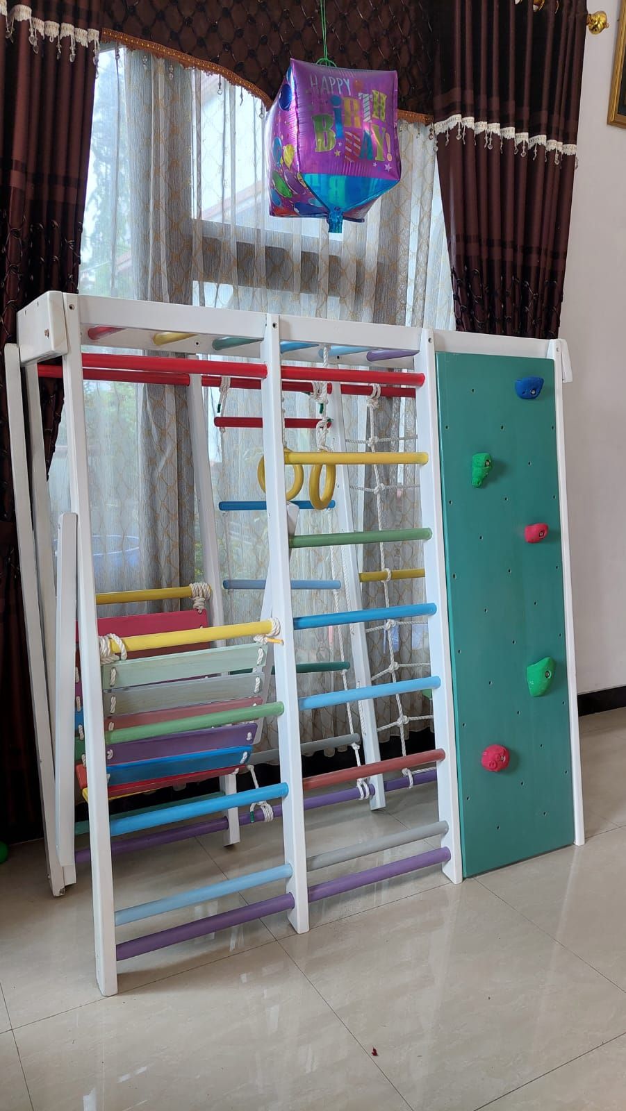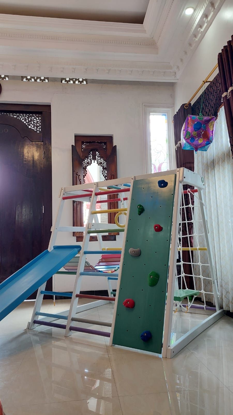 Fitur : Wall Climbing, ladder, rope ladder, monkey bar, spider web, gym ring, standar wing, jembatan, slide dua sisi bolak balik dengan pijakan kaki