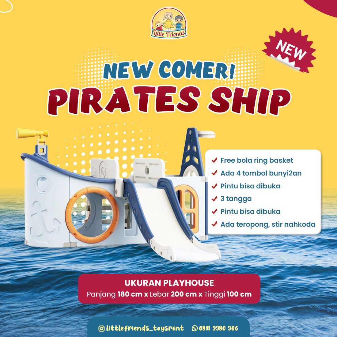 Karakter Pirate - Ukuran playhouse Panjang 180 CM Lebar 200 CM Tinggi 100CM - Free bola ring basket - Ada 4 tombol bunyi2an - Pintu bisa dibuka - 3 tangga - Pintu bisa dibuka - Ada teropong, stirr nahkoda