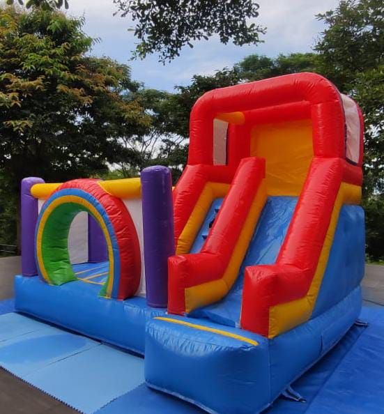 - Cocok digunakan untuk bermain kering. Kapasitas 6-8 anak, terdiri dari slide dan area melompat