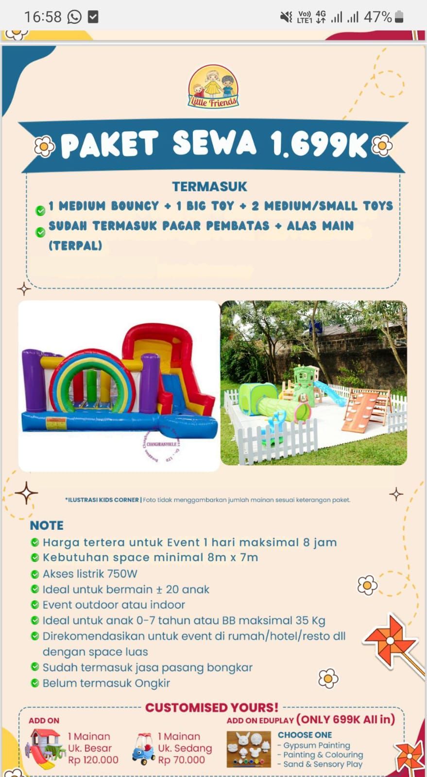 - Harga tertera untuk Event 1 hari maksimal 8 jam